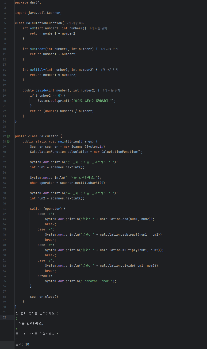 자바로 구현한 계산기