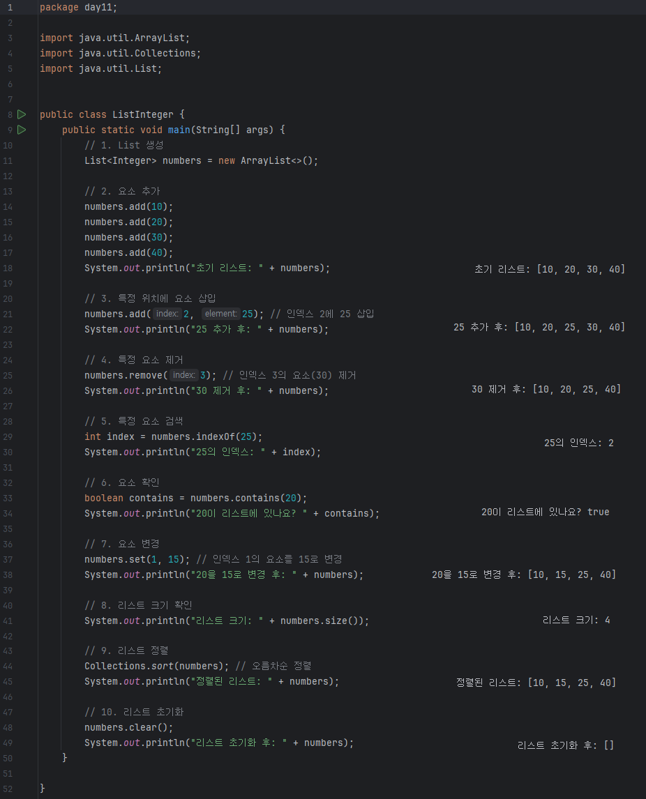 - ArrayList: 동적으로 크기가 변하는 배열.