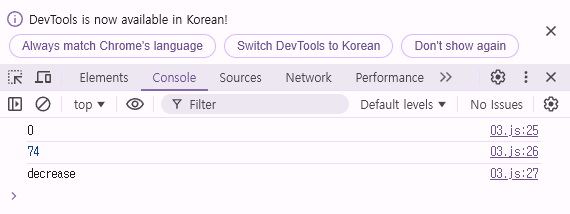decrease 버튼의 id 속성 값을 가져옵니다. 해당 버튼의 id는 "decrease"이므로, console.log(decrease.id)는 "decrease"를 출력합니다.